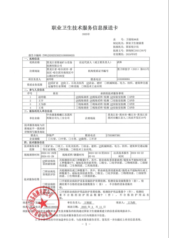 中央儲備糧嫩江直屬庫有限公司職業(yè)病危害定期檢測